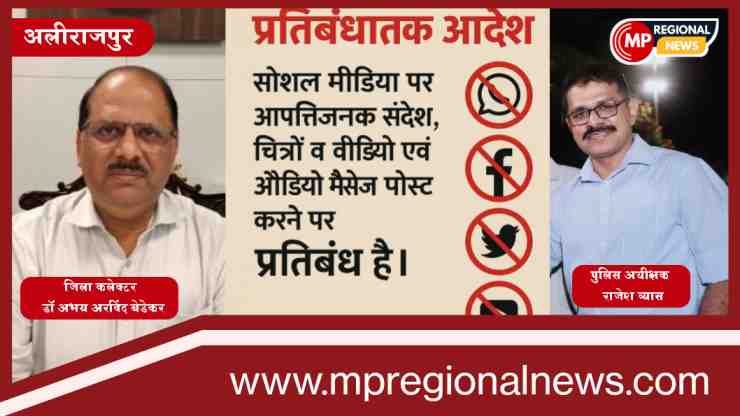 अलीराजपुर। जिले में सोशल मीडिया के जरिये फैलाई जा रही आपत्तिजनक और भड़काऊ सामग्री पर सख्ती करते हुए कलेक्टर डॉ. अभय अरविंद बेडेकर ने प्रतिबंधात्मक आदेश जारी किया है। यह आदेश भारतीय नागरिक सुरक्षा संहिता, 2023 की धारा 163(1) के तहत सम्पूर्ण अलीराजपुर जिले में प्रभावशील रहेगा और आगामी दो माह तक लागू रहेगा।