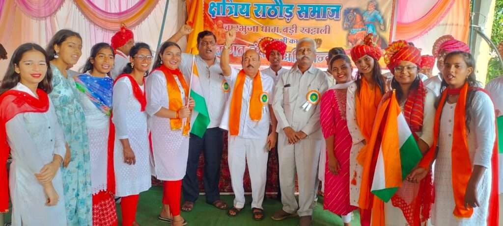 अलीराजपुर । बड़ी खट्टाली नगर के राठौड़ समाज द्वारा 13 अगस्त मंगलवार को वीर दुर्गादास राठौड़ की 386 जयंती की शुभ अवसर पर भव्य शोभायात्रा निकाली गई। शोभा यात्रा बेड बाजों के साथ नगर के प्रमुख मार्गो से होते हुए राठौड़ समाज भवन पर पहुंची। जिसमें समाज की बालिकाएं साफा बांधकर नृत्य करते हुए चल रही थी। हाथों में तिरंगा एवं भगवा ध्वज लहराते हुए देश भक्ति गानों पर सैकड़ों की तादाद में समाज की महिला व पुरुष वह बच्चे झूमते गाते एक समान ड्रेस कोड में चल समारोह की शोभा बड़ा रहे थे।