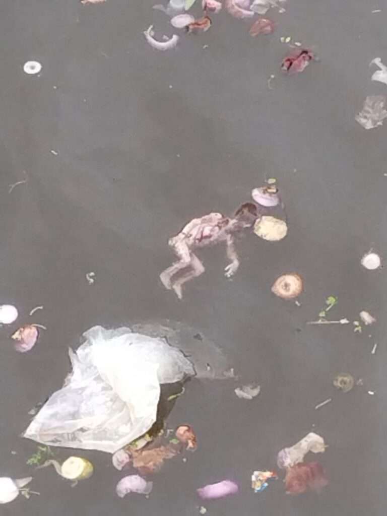चंद्रशेखर आजाद नगर भाभरा में कुम्हार मोहल्ले की मंडी रोड़ वाली रपट पुलिया पर अविकसित भूर्ण नदी में तैरता पाया गया